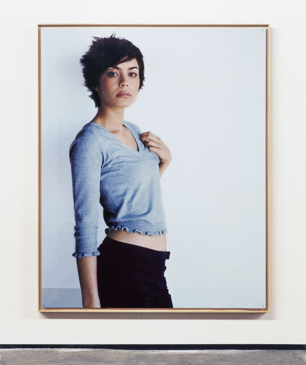 From the wide range of pictures available on the Internet of the actress Shannyn Sossamon Björnsson focuses on a few that exist as sets from the same sittings. More than one image taken on the same occasion provides the notion of a sequence or a miniature narrative and undermines the autonomy of the single image. The multiple pictures are consolidated into one idea in the mind of the viewer, perhaps making it possible for a more genuine, a more personal portrayal of that person to emerge. Björnsson’s shift from a brief session in front of the computer to a longlasting relationship with the images suggests a story of love, worship or even obsession. Within the solitude of his studio, he meticulously enhances the quality of the source material, prints each image out as numerous small fragments to be reassembled on the wall. Similarly, he works extensively on some images with a pencil, tracing them through a transparent sheet of paper.